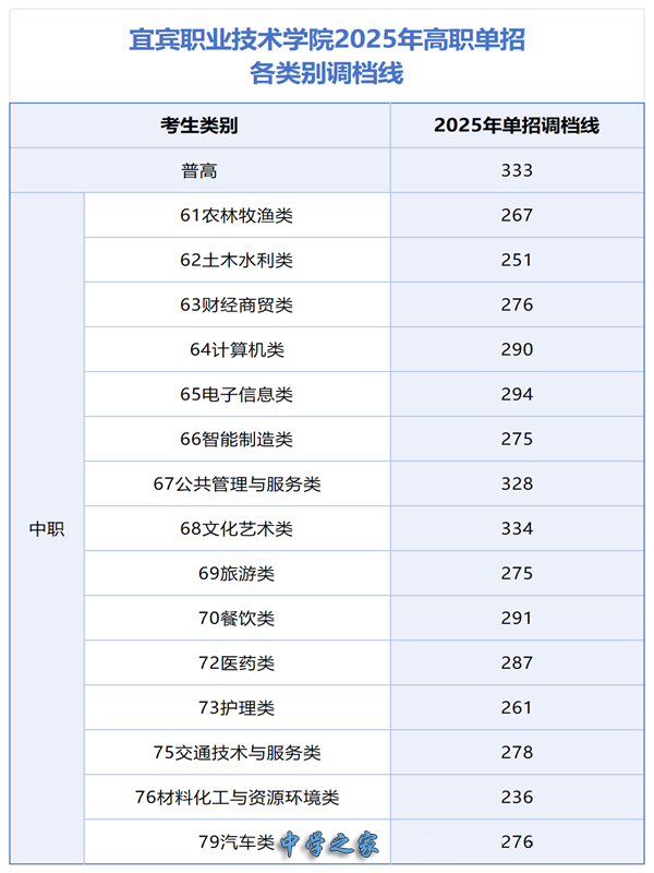 2025年单招各类别专业最低调档线(普高+中职)