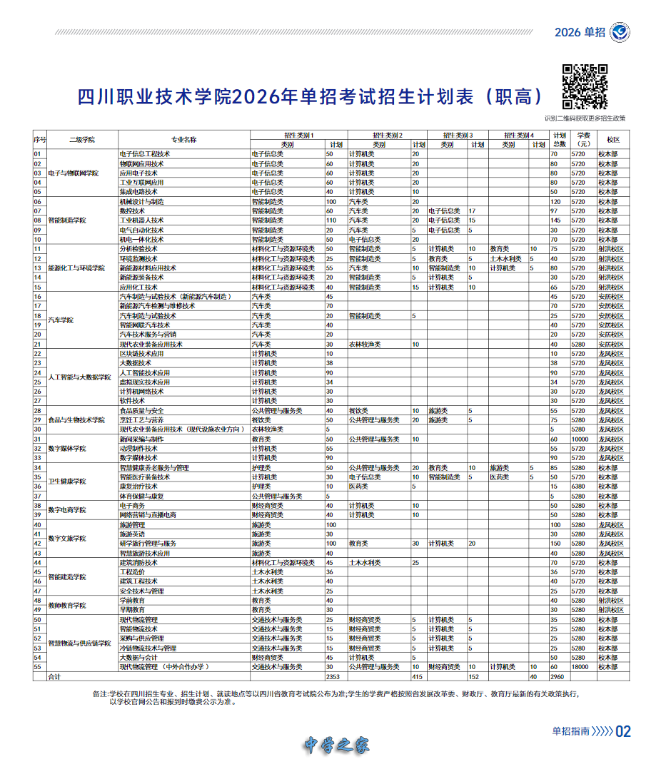 2026年单独招生专业计划一览表: