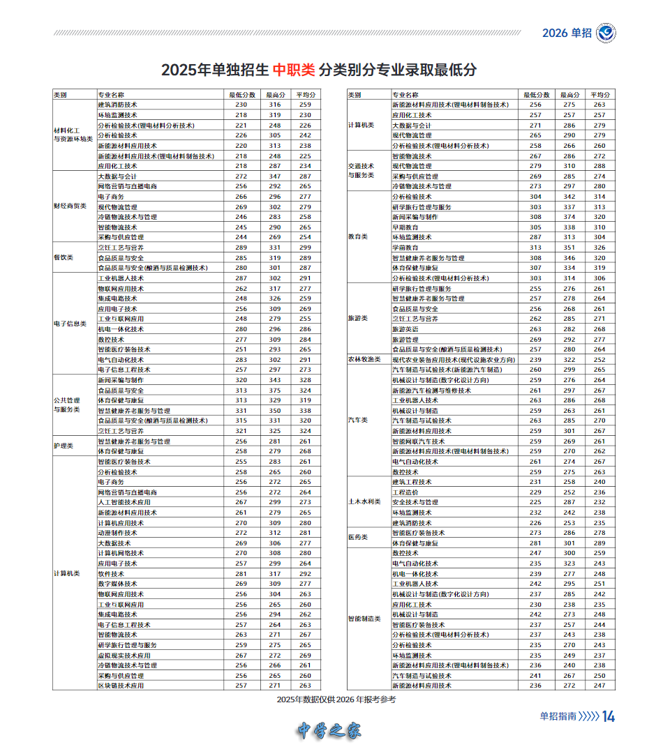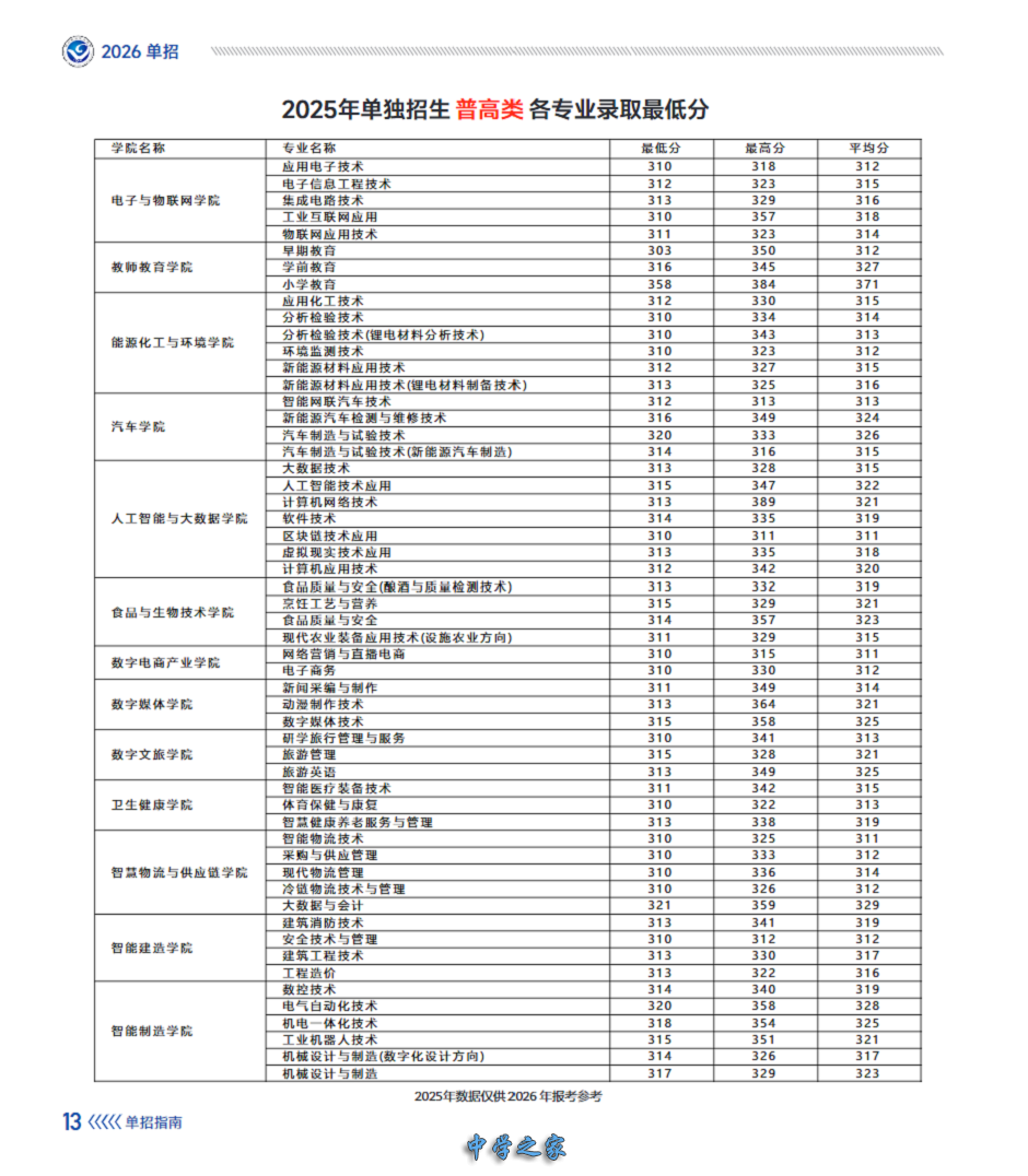 2025年单独招生专业及最低调档线: